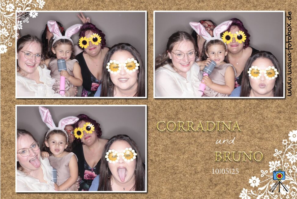 Am 10. Mai 2025 gaben sich Corradina und Bruno das Ja-Wort – gefeiert wurde stilvoll und ausgelassen im wunderschönen Getzemanns Hof in Geldern. Bei gutem Essen, toller Musik und bester Stimmung wurde bis in die frühen Morgenstunden getanzt, gelacht und natürlich fotografiert. Unsere Fotobox war mittendrin und hat viele dieser besonderen Augenblicke eingefangen.